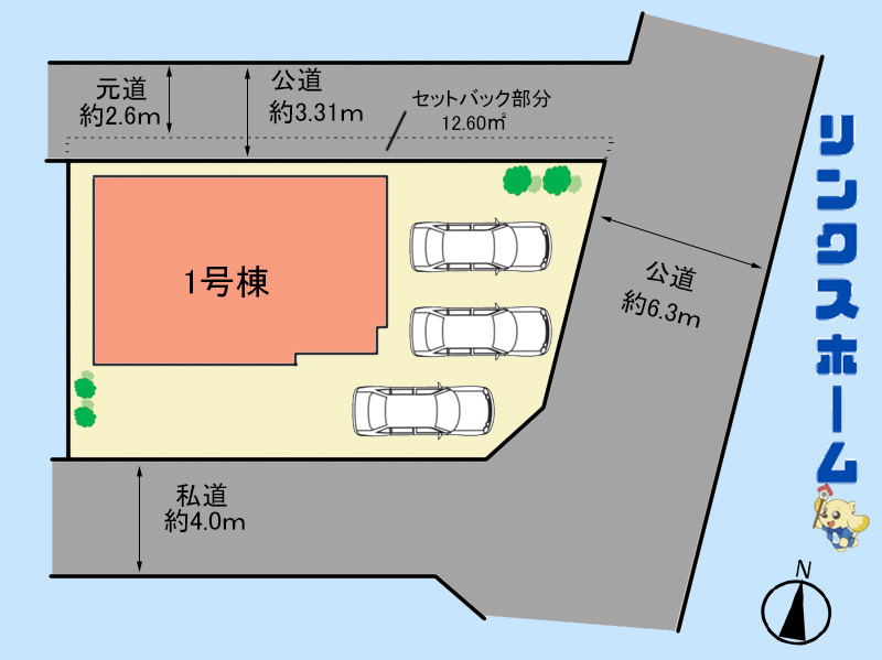 | 接道状況 | 東6.3m公道 南4.0m私道 北2.6m公道 | ||