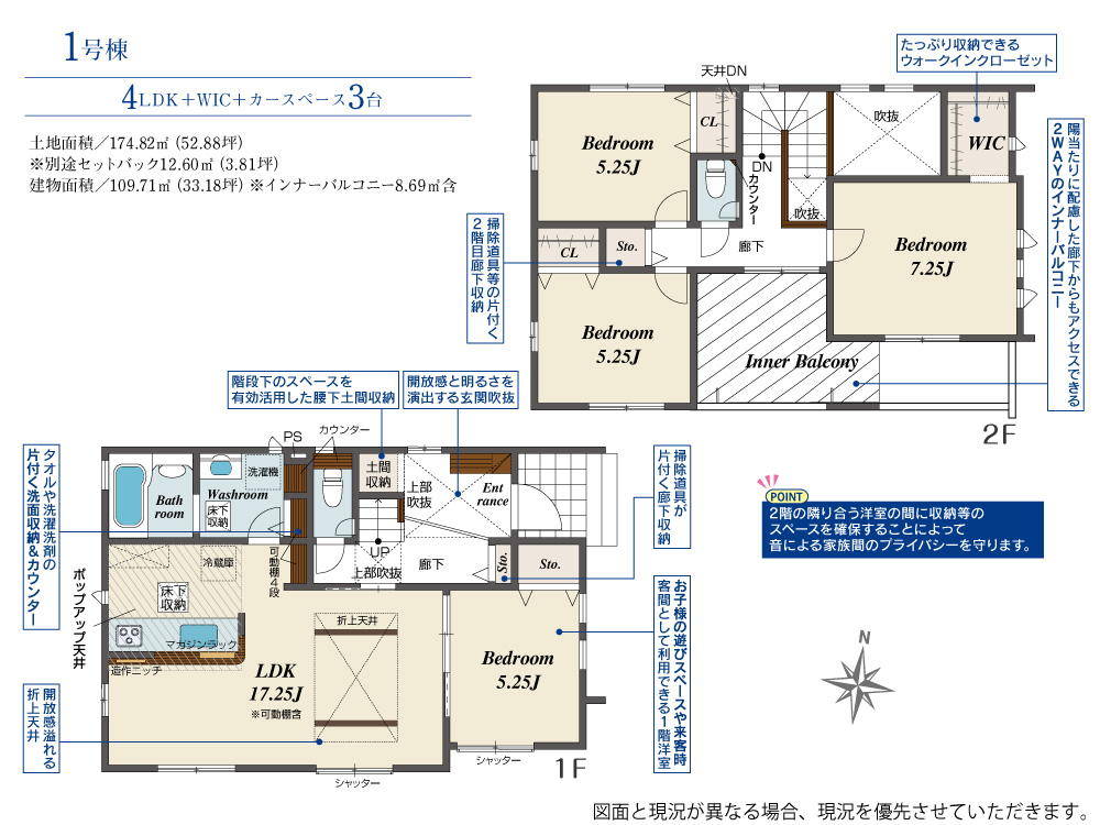 | 建物面積 | 109.71㎡(33.13坪) | 土地面積 | 174.82㎡(52.80坪) |