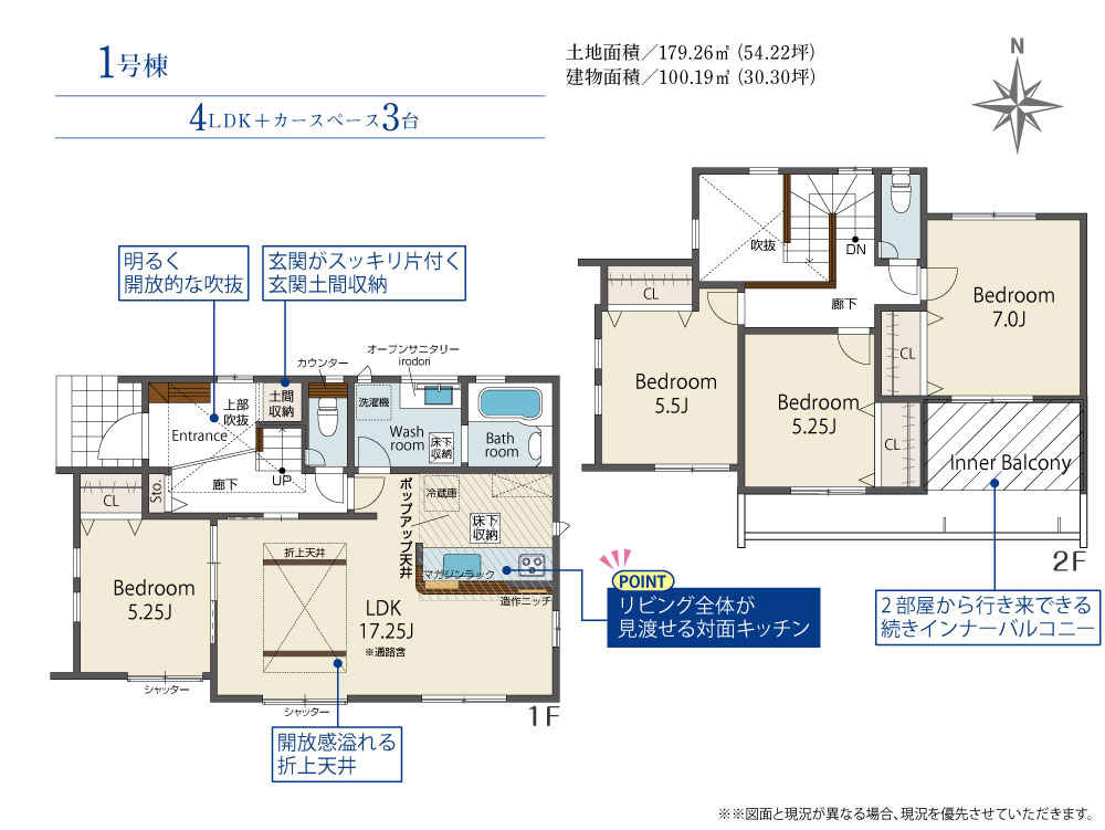 | 建物面積 | 100.19㎡(30.26坪) | 土地面積 | 179.26㎡(54.14坪) |