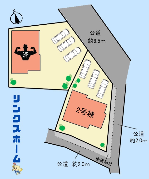 接道状況 北東約6.5m公道 東 南側約2.0m公道(舗装有)