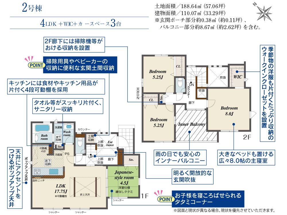 建物面積 110.07㎡(33.24坪) 土地面積 188.64㎡(56.97坪)