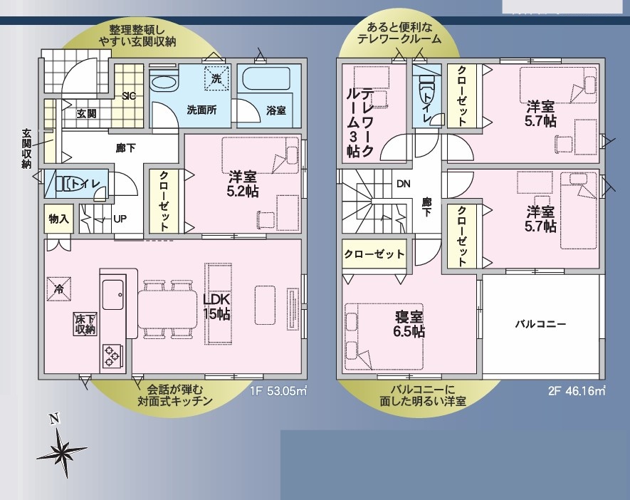 ◆家族の会話を楽しみながら料理ができる対面キッチン♪
